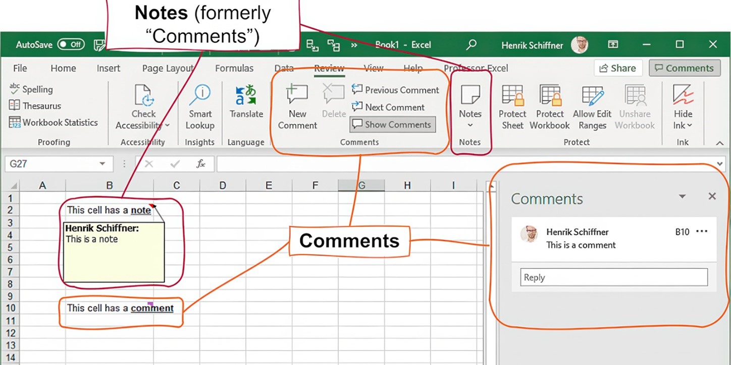 یادداشت و توضیحات اضافی در آموزش اکسل، قابلیت هایی هستند که با عنوان Note یا Comment شناخته می شوند. کامنت ها قابلیت اضافه کردن پاسخ را نیز دارند که در این حالت به یک مکالمه مجازی تبدیل می شوند.
