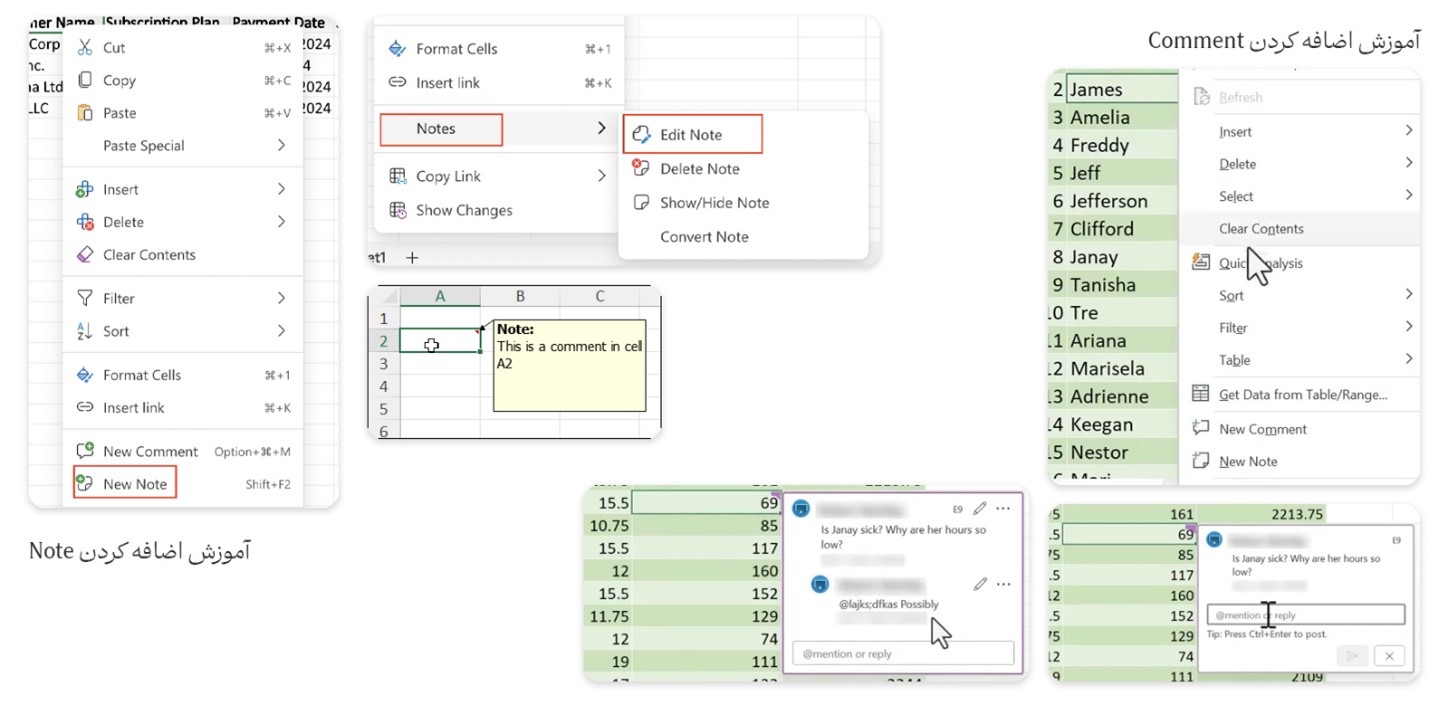 روش های اضافه کردن یادداشت در آموزش اکسل