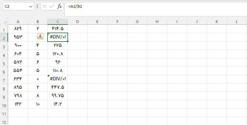 تابع ISERROR در اکسل این نمونه، کاربرد تابع ISERROR در اکسل را نمایش میدهد. به عنوان نمونه، وقتی یک فرمول در اکسل تلاش کند عددی را بر صفر تقسیم کند، خطای #DIV/0! ظاهر خواهد شد: