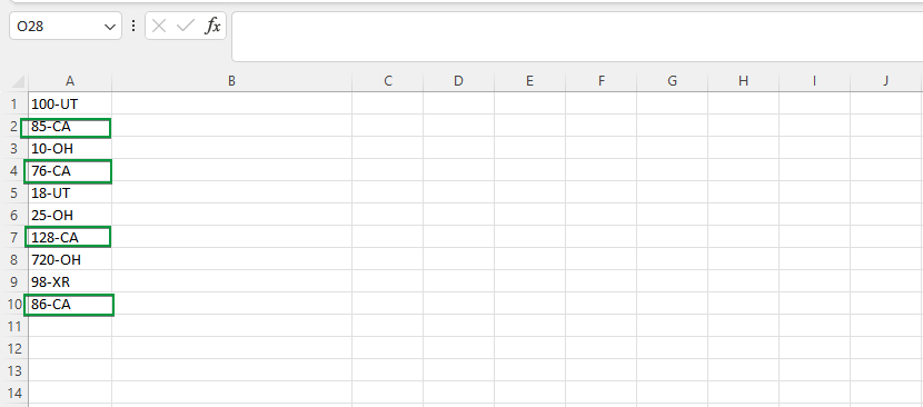 نتیجه: اکسل همهی نمونههای TX را با CA جایگزین میکند.