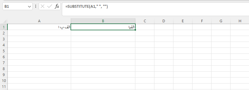 تابع SUBSTITUTE در زیر فاصلهها را با رشتهی خالی جایگزین میسازد.