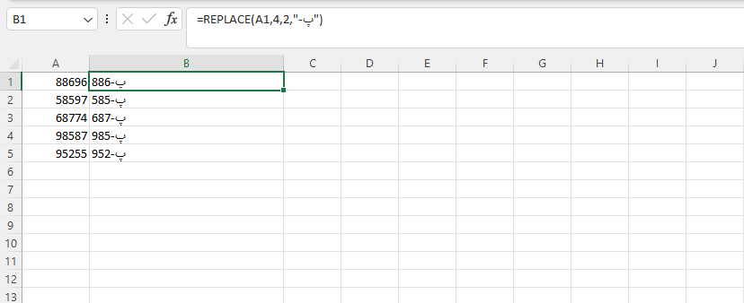 تابع REPLACE در مثال زیر از موقعیت ۴ آغاز شده و دو کاراکتر را با -پ جایگزین میکند