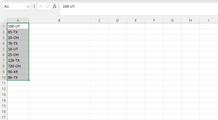بهعنوان نمونه، بازهی A1:A10 را انتخاب کنید