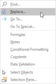 در زبانهی Home و گروه Editing، روی Find & Select کلیک کنید.